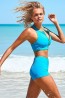Beach Bound Zip Front Tank Bikini Top - Turquoise Features