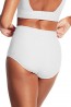 High Waist style,  Low legline, Greater coverage, Textured fabrication.