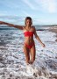 Katie is wearing a size 14 swimsuit. She usually wears an AU 12-14, is 180cm tall, has a 101cm bust, 109cm hips and a 81cm waist.