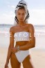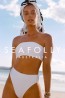 Frankie is wearing a size 10 swimsuit. She usually wears an AU 8, is 180cm tall, has an 81cm bust, 91cm hips and a 61cm waist.