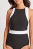 Valentina Black High Neck Multifit One PieceSea Level Australia is all about timeless elegance. Classic Black & White on textured fabric, you are in a swimwear that would never be out of trend.