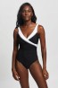Valentina Black Wrap Front Cross Multifit One Piece - Classic Black & White on textured fabric, you are in a swimwear that would never be out of trend.